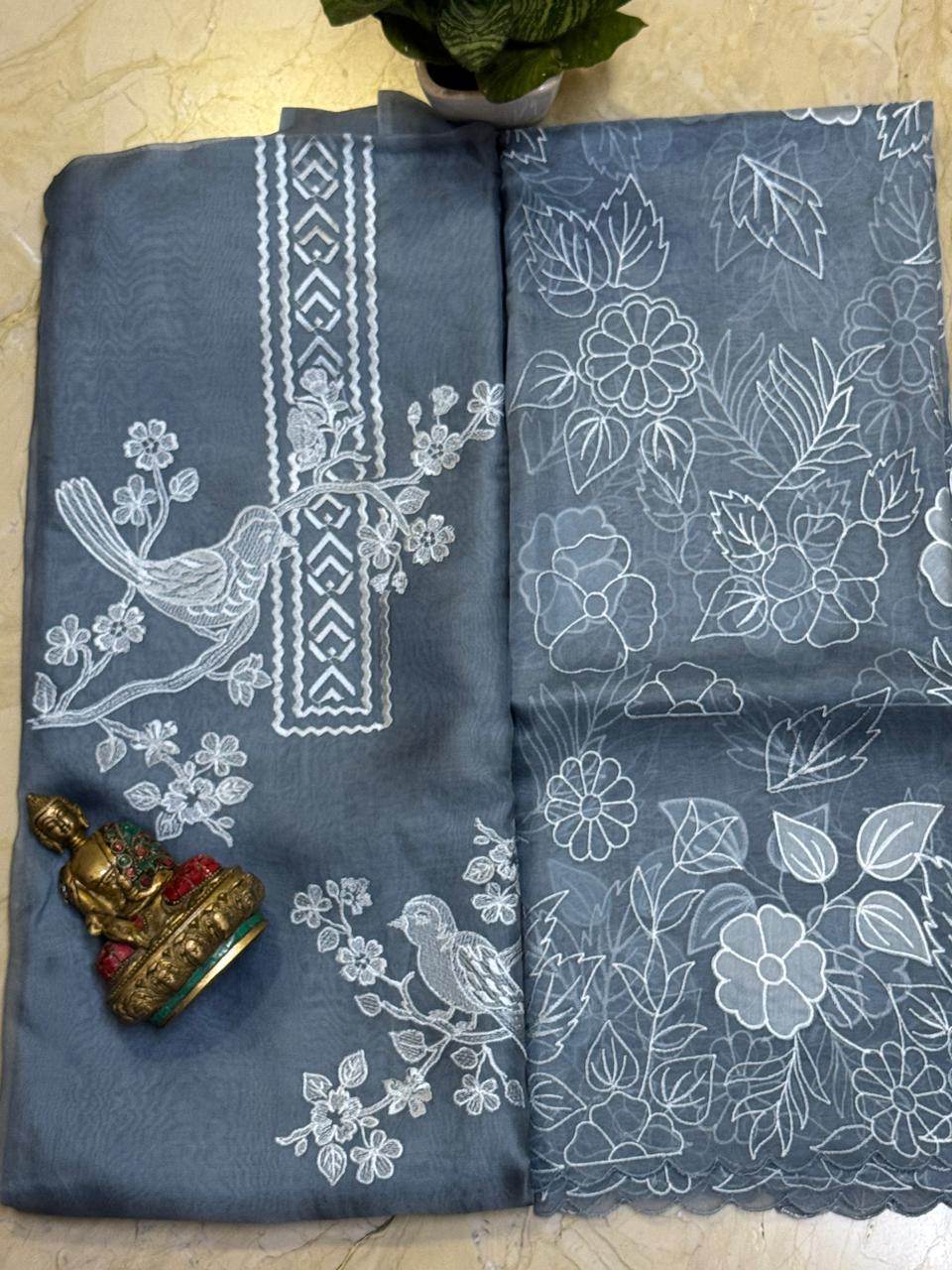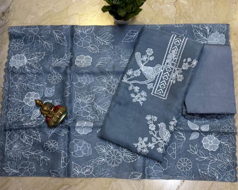 Pure Organza Silk Kurta with Appliqué Work, Organza Dupatta & Cotton Silk Bottom – Feather Light Luxury (35g)